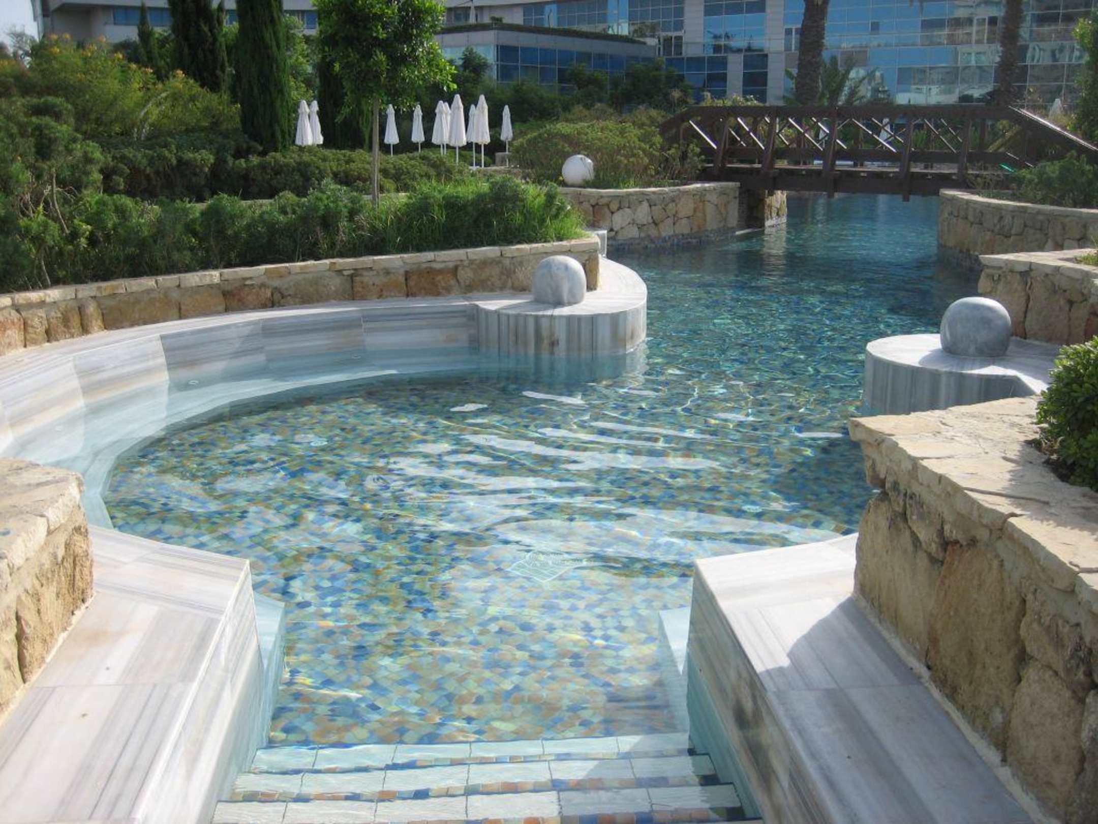 Petite partie d'une des piscines où il y a des jets d'eau