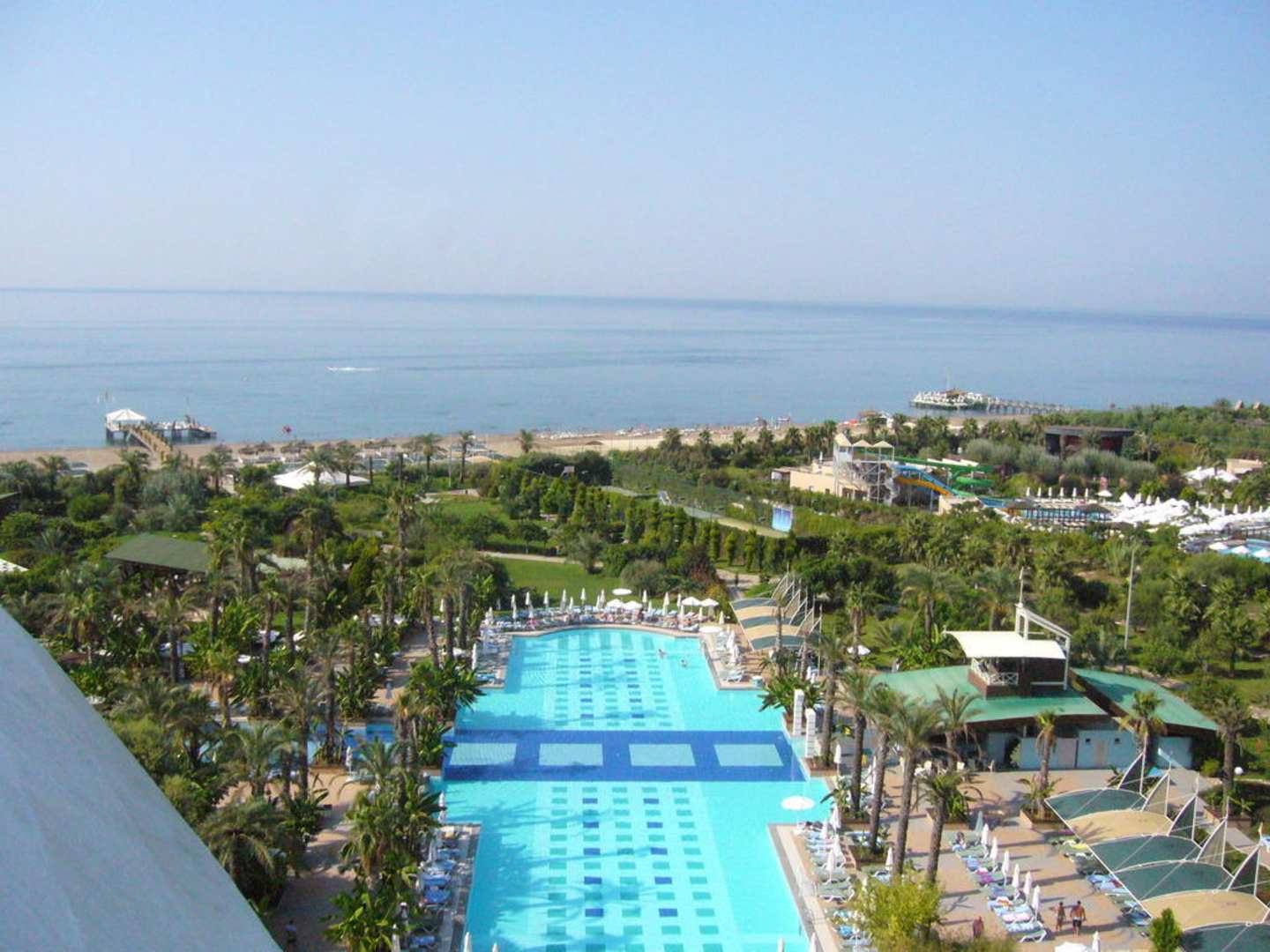 Das ist der Ausblick von unserem Balkon aus, ziemlich früh morgens -> Hauptpool
