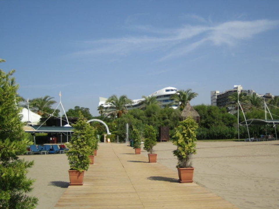 Steg am Hotel-Strand. Das Concorde sieht man im Hintergrund