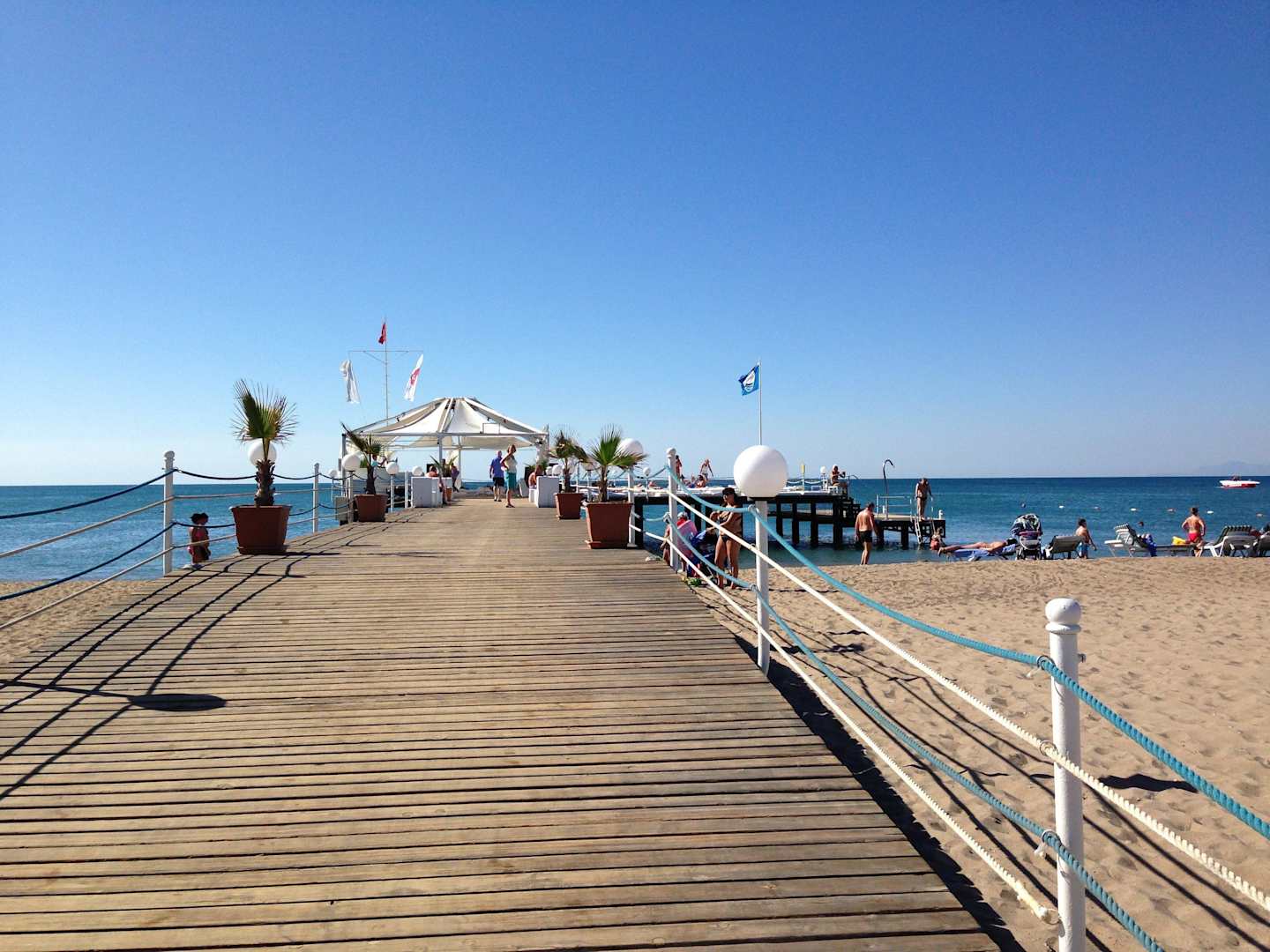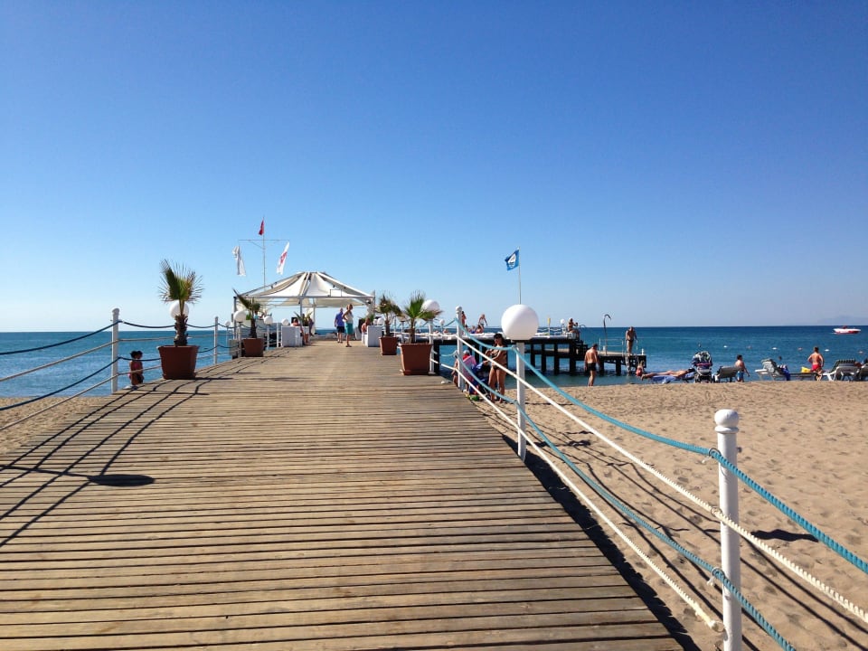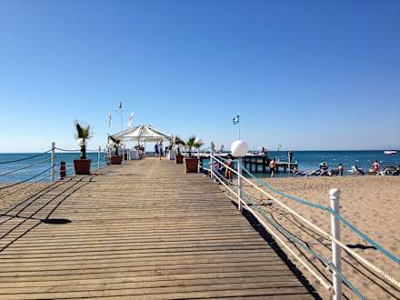 Strand-Steg mit Sonnenliegen
