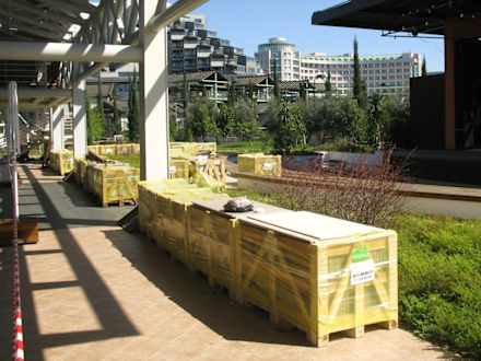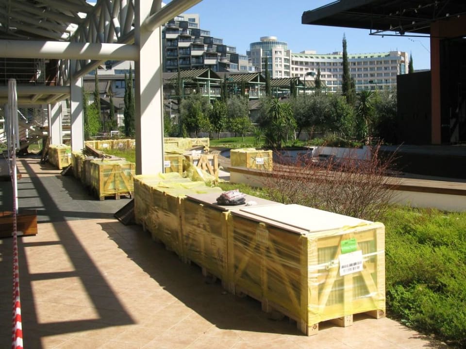 Baumaterial säumt die Wege zum StrandAn der Bühne wird wohl noch eine ganze Weile gearbeitet, hier der Status Ende März 2011.
