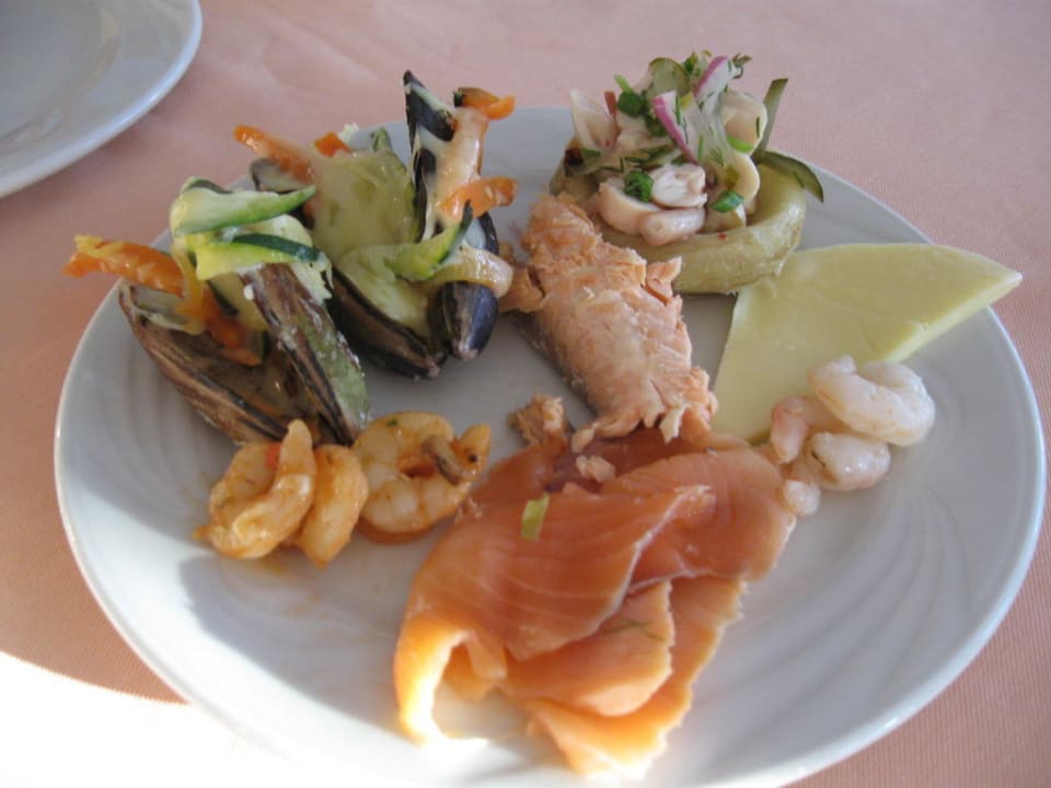 Мидии под сыром, лосось
