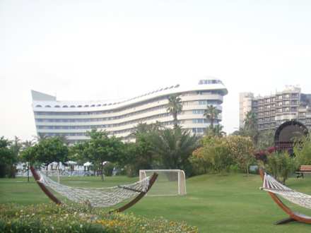 View to the Hotel Concorde from the garden