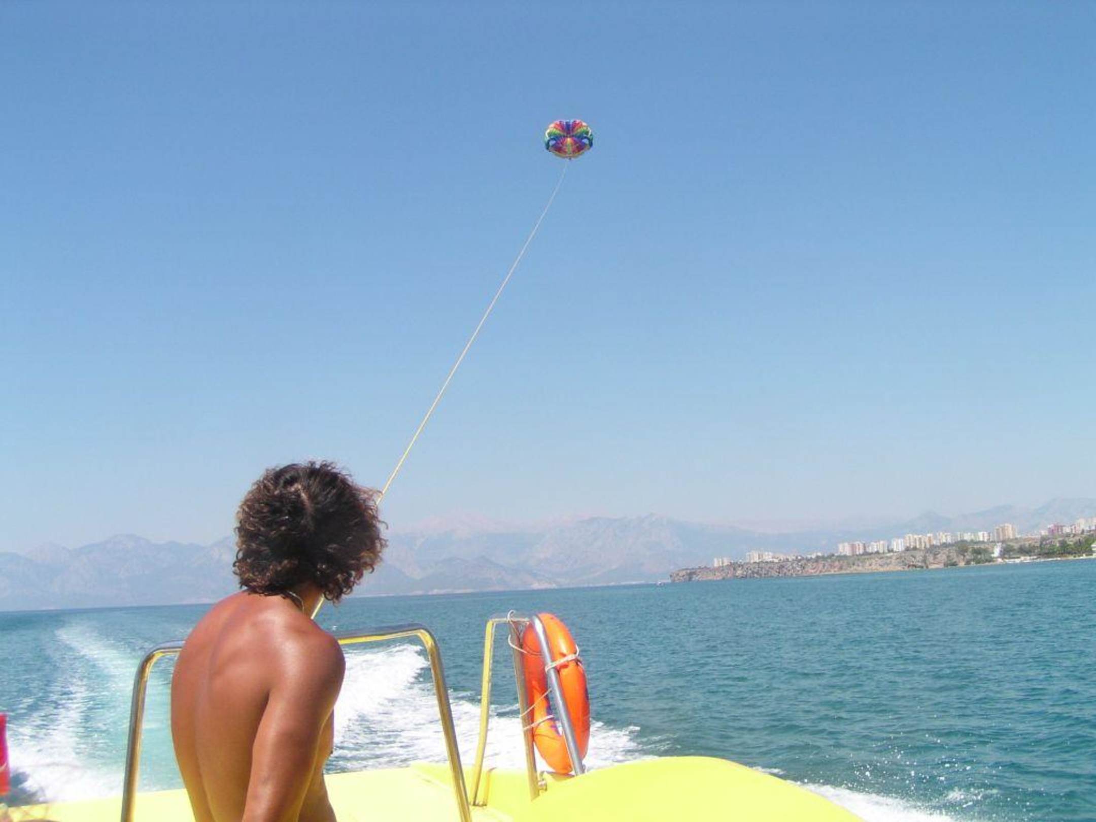 ParasailingBootsausflug (10 Minuten einfach) zum Wasserfall nach Antalya in Verbindung mit Parasailing (45 EUR).