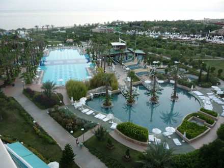 вид из нашего номера на два бассейна и море