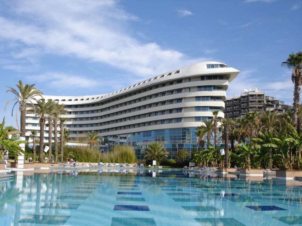 Blick vom Pool zum Hotel
