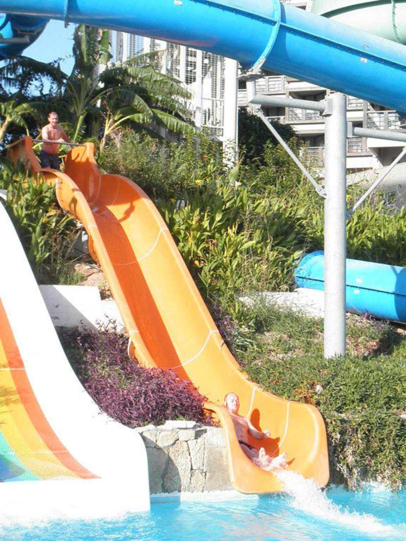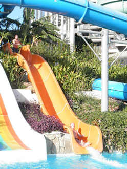 2 van de 4 glijbanen, bovenin is nog een glijbaan te zien.