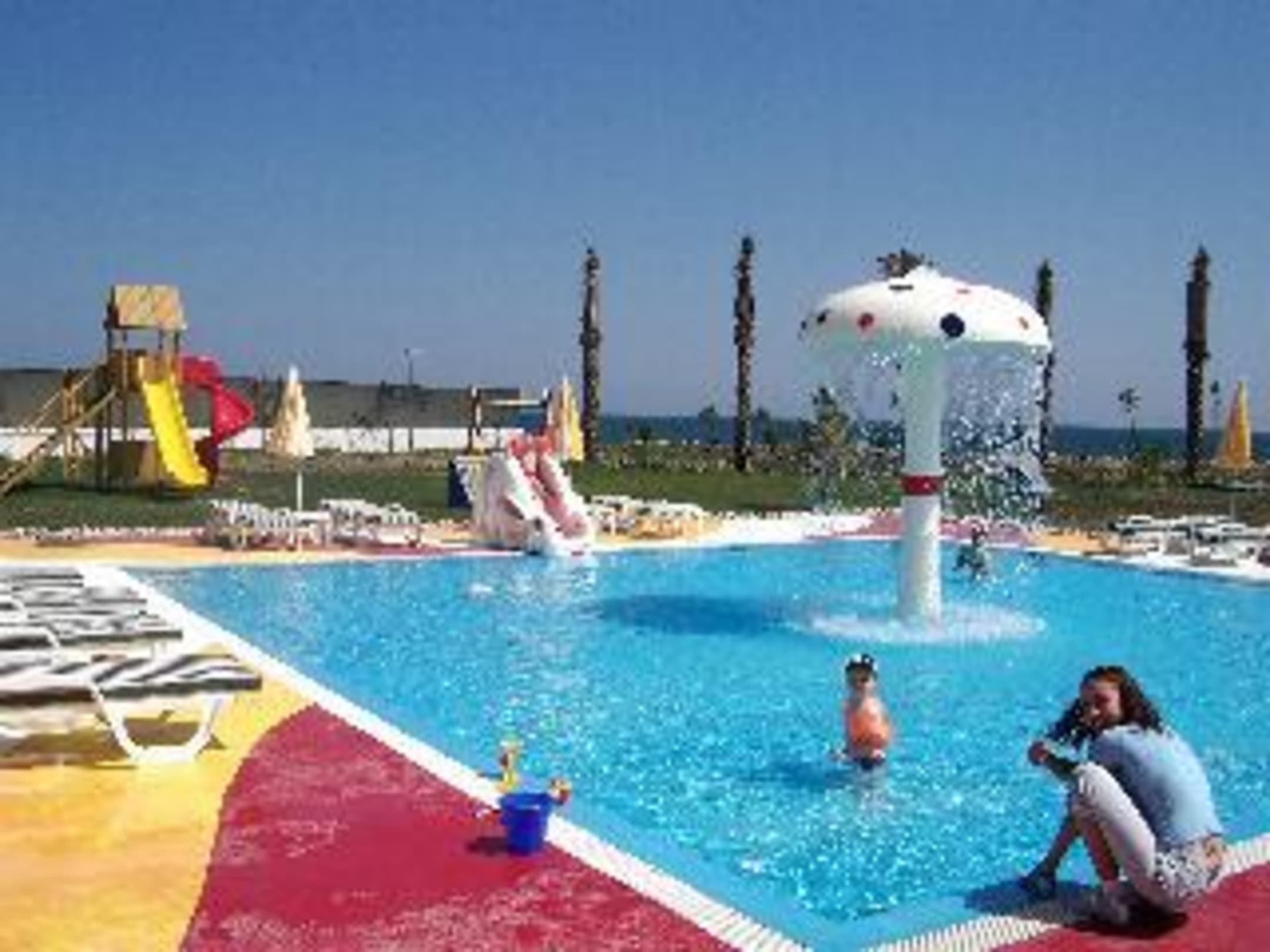 Kinderpool mit dahinterliegendem Spielplatz