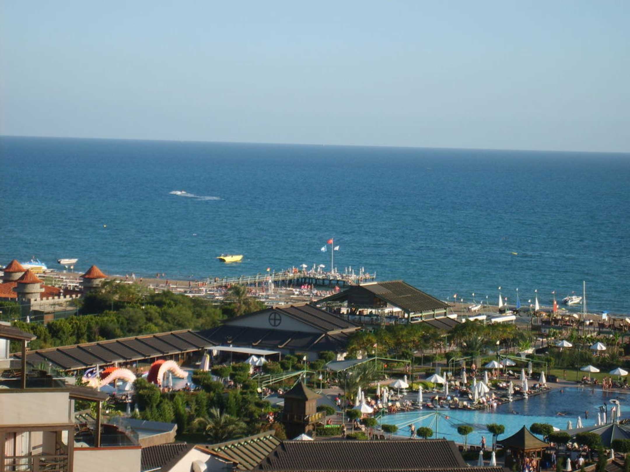 Zeigt einen kleinen Ausschnitt der Hotelanlage von unseren Balkon in der 7. Etage.