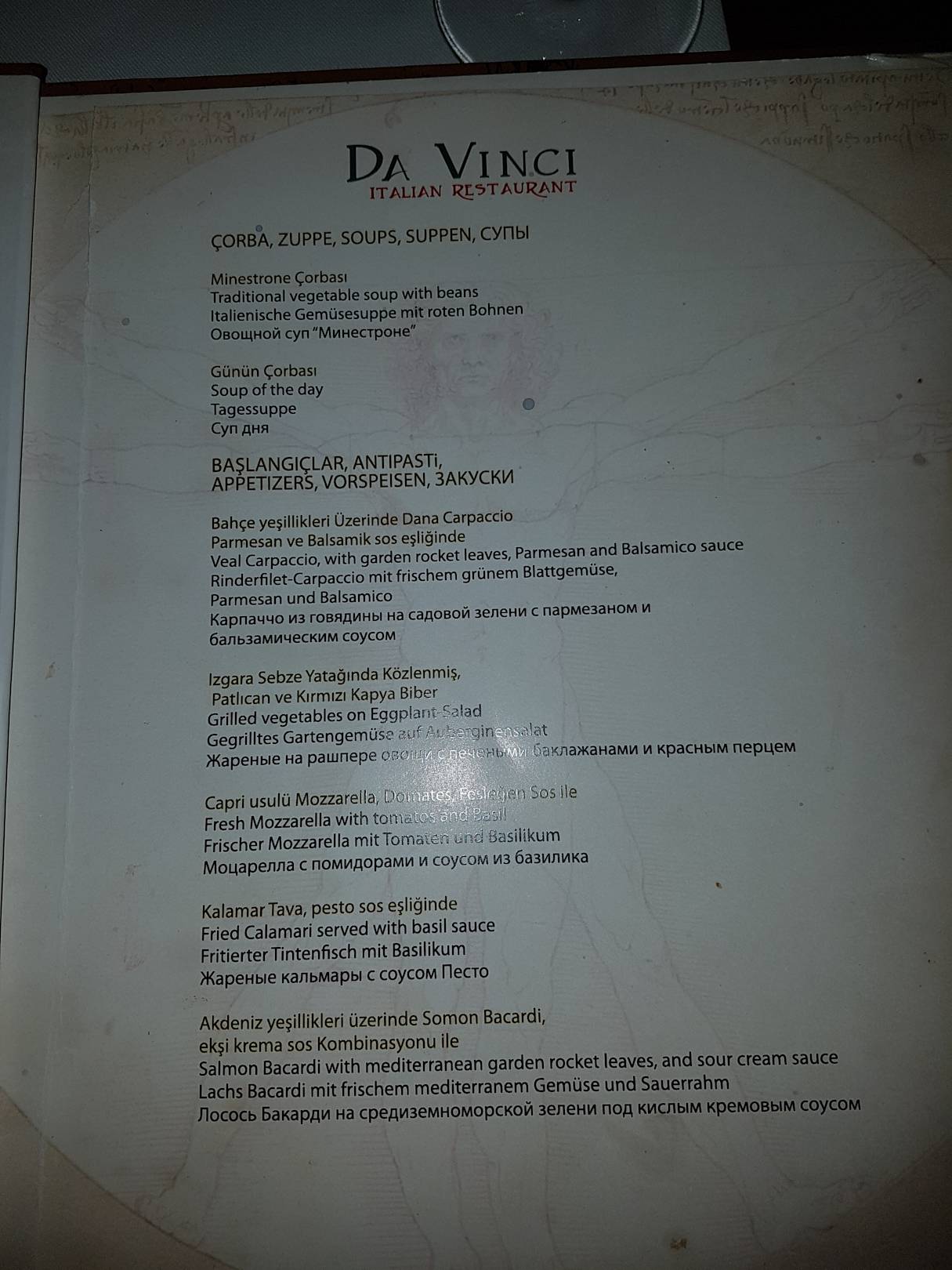 Speisekarte Italiener