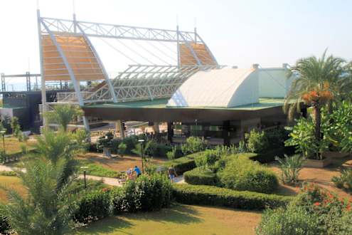 Blick auf den Snackbar-Bereich und links die Bühne