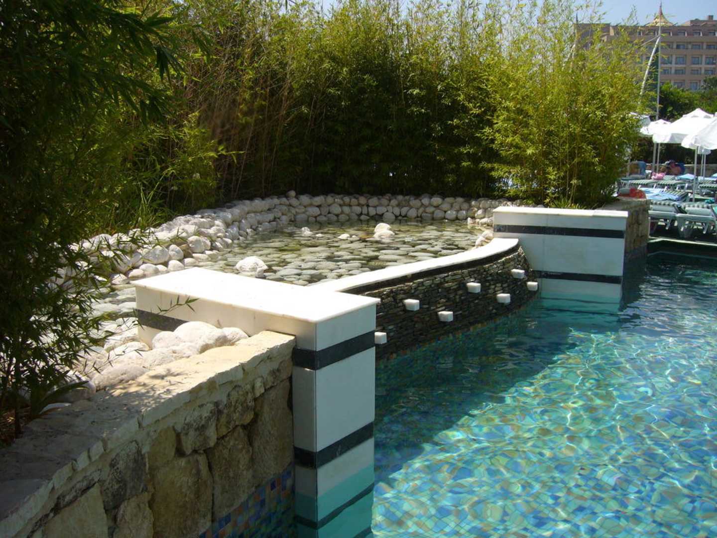 Wasserfall mit Springbrunnen am Ruhepool