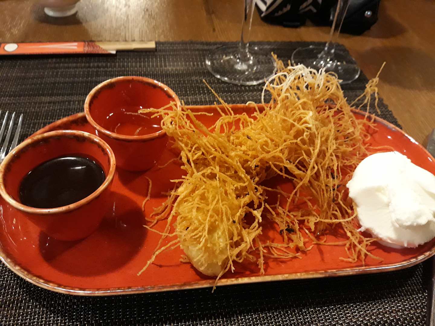 Gebackene Banane mit Engelshaar, chinesisch A la Card