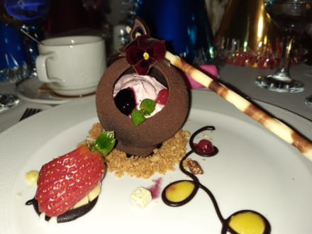 erstklassiges Silvestermenü mit Kugel aus Halbbitterschokolade usw.....