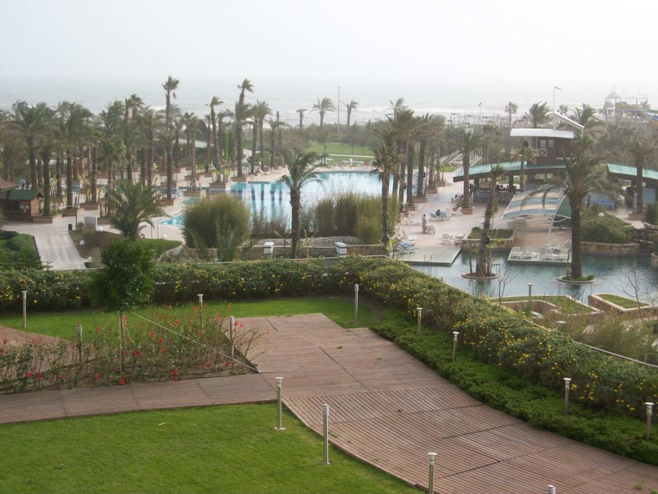 A view of the grounds from the hotel. This leads down to the private beach.