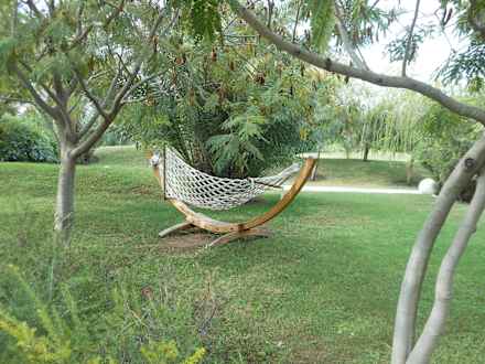 Hängematten, verteilt im Garten