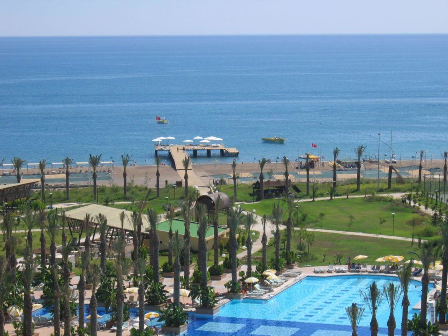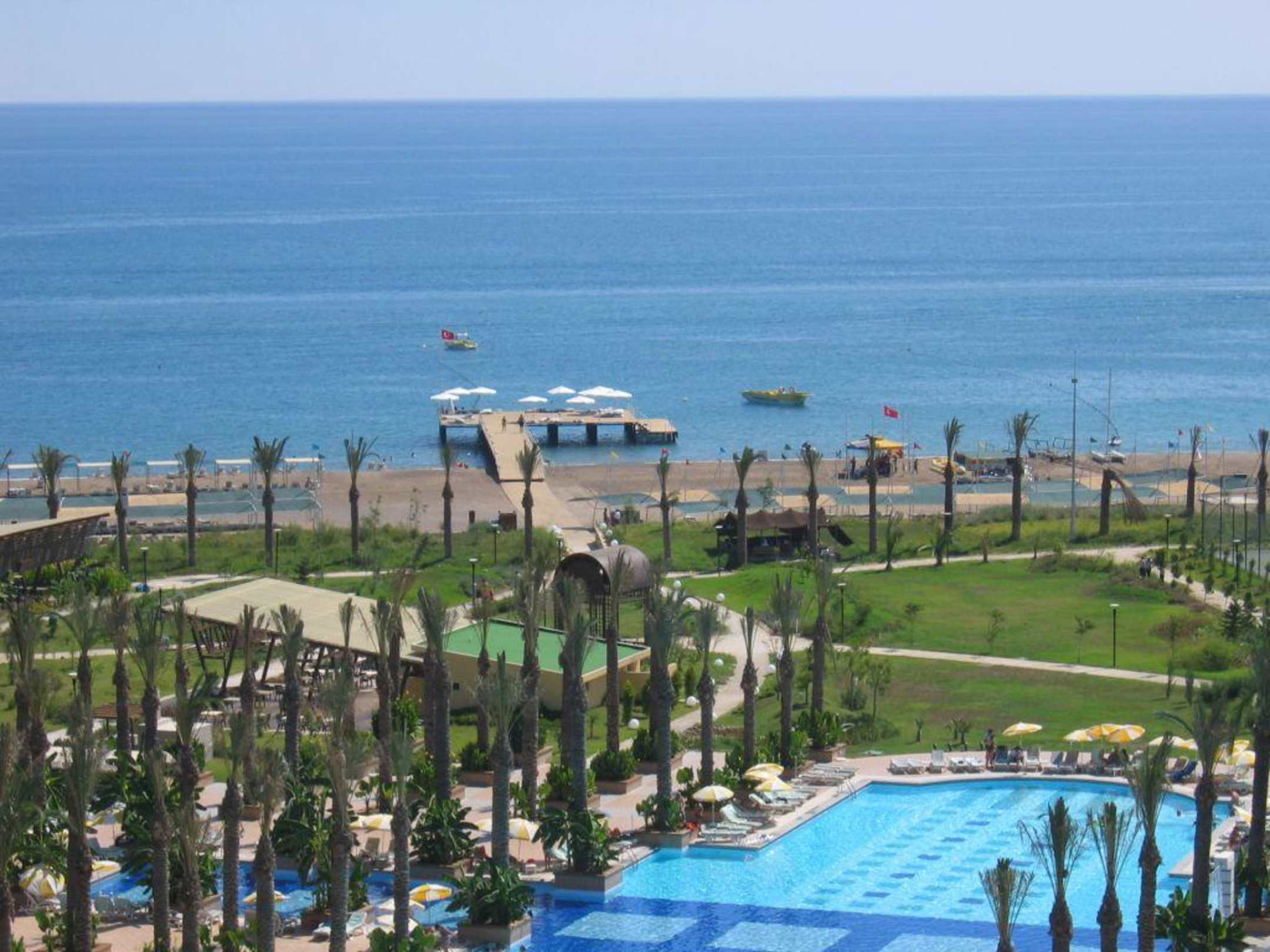 Blick auf die Anlage und den StrandConcorde Resort & Spa in Antalya-Lara, Blick auf die Aussenanlage und den Strand