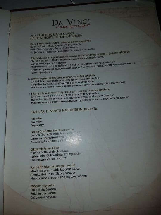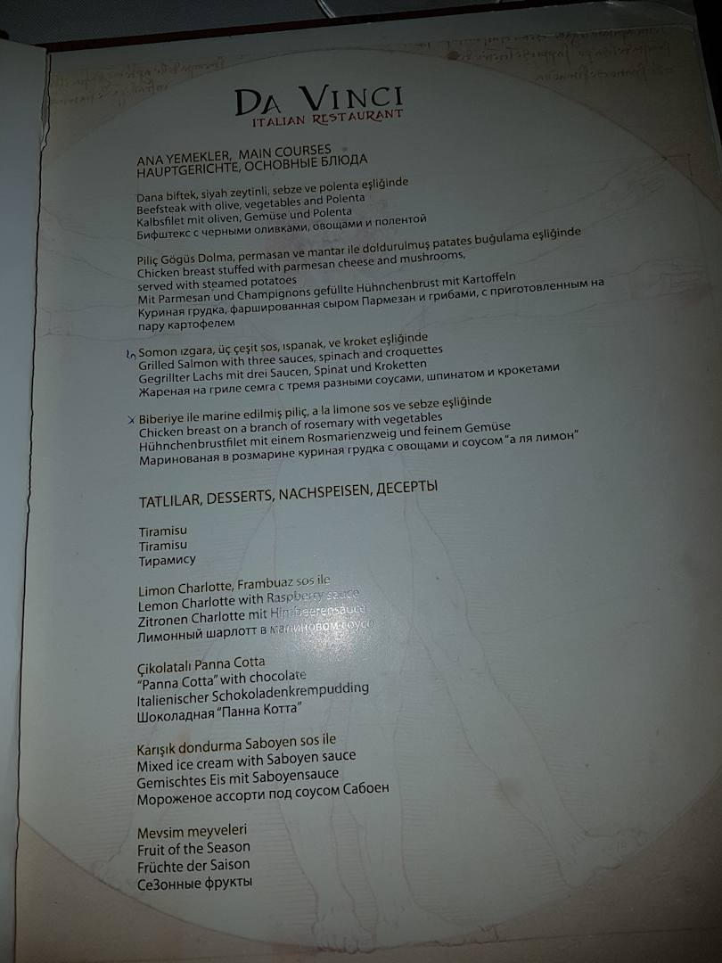 Speisekarte Italiener