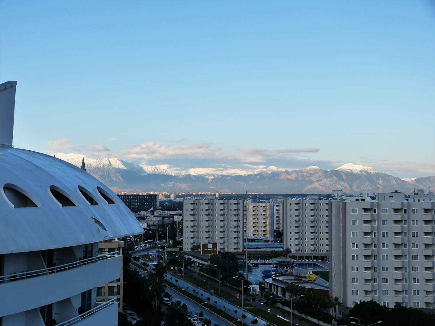 Ausblick zur Zufahtsstraße aus dem 7. Stock und den Taurus Gebirge..