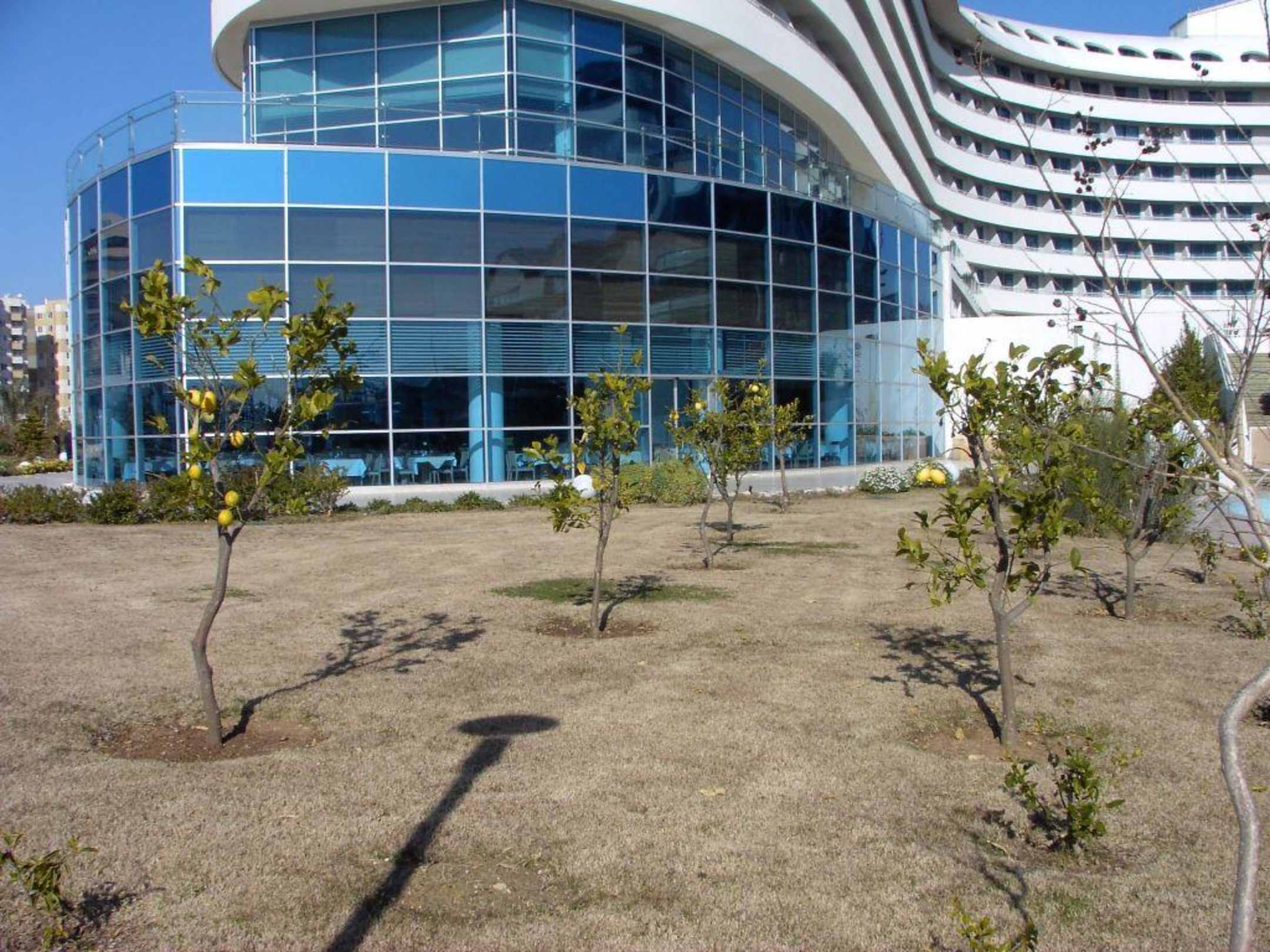 Zitronenbäume mit Blick auf das Restaurant