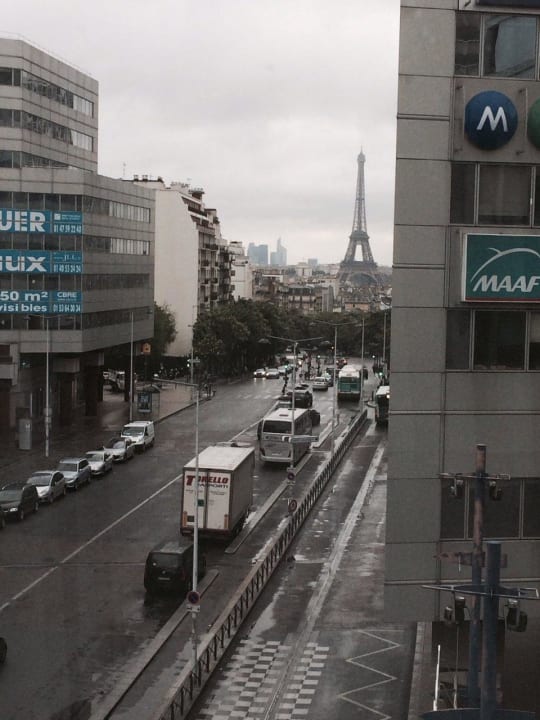 Blick auf den Eiffelturm ist von manchen Hotelzimmern aus möglich (hier z.B. Nr. 537), jedoch aufgrund der Lage des Hotels beschreiden.