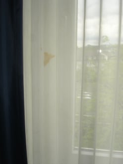 ZimmerDer Vorhang in Zimmer 411 hat einen grossen Fleck und sollte mal wieder gewaschen oder ausgetauscht werden.