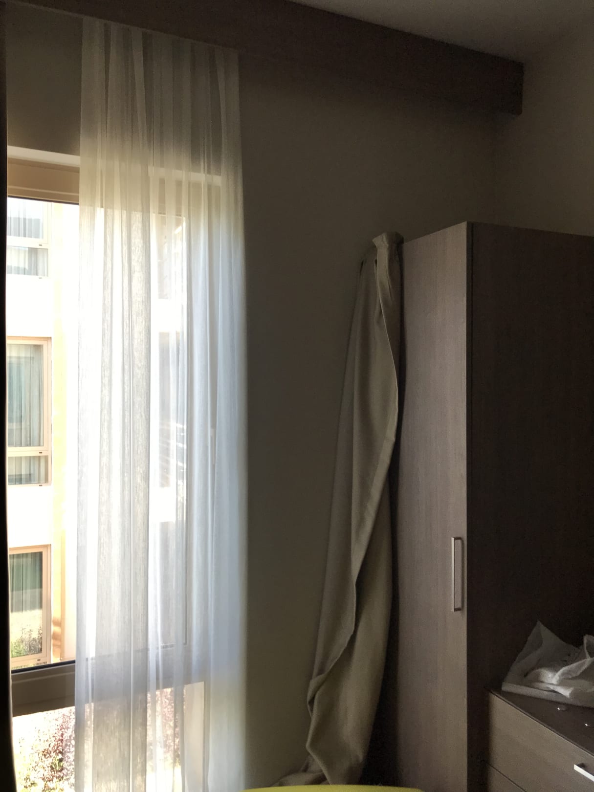 ZimmerUnsere Gardine, die irgendjemand beim sauber machen abgenommen und nicht wieder dran gemacht hat. Nach zwei Beschwerden kam dann jemand. :D