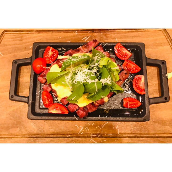 Rinderschinken mit Käse überbacken. Flame Restaurant