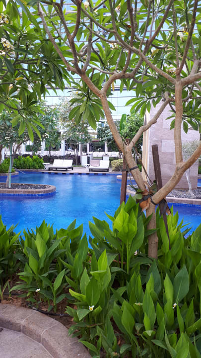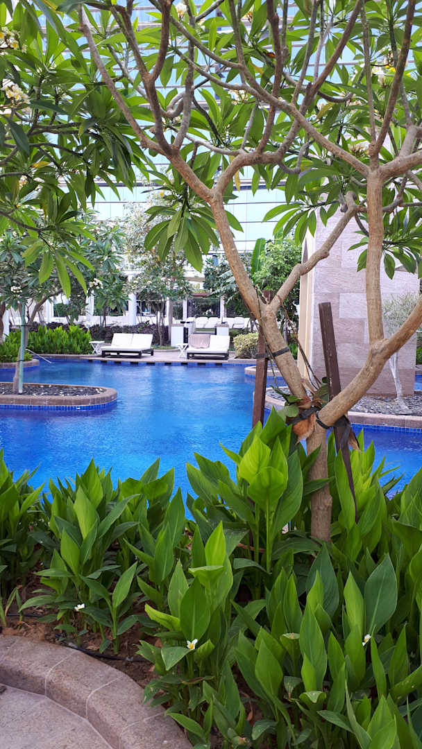 Poolanlage des Conrad Hotel, das Wasser war warm, man kann direkt reingehen.