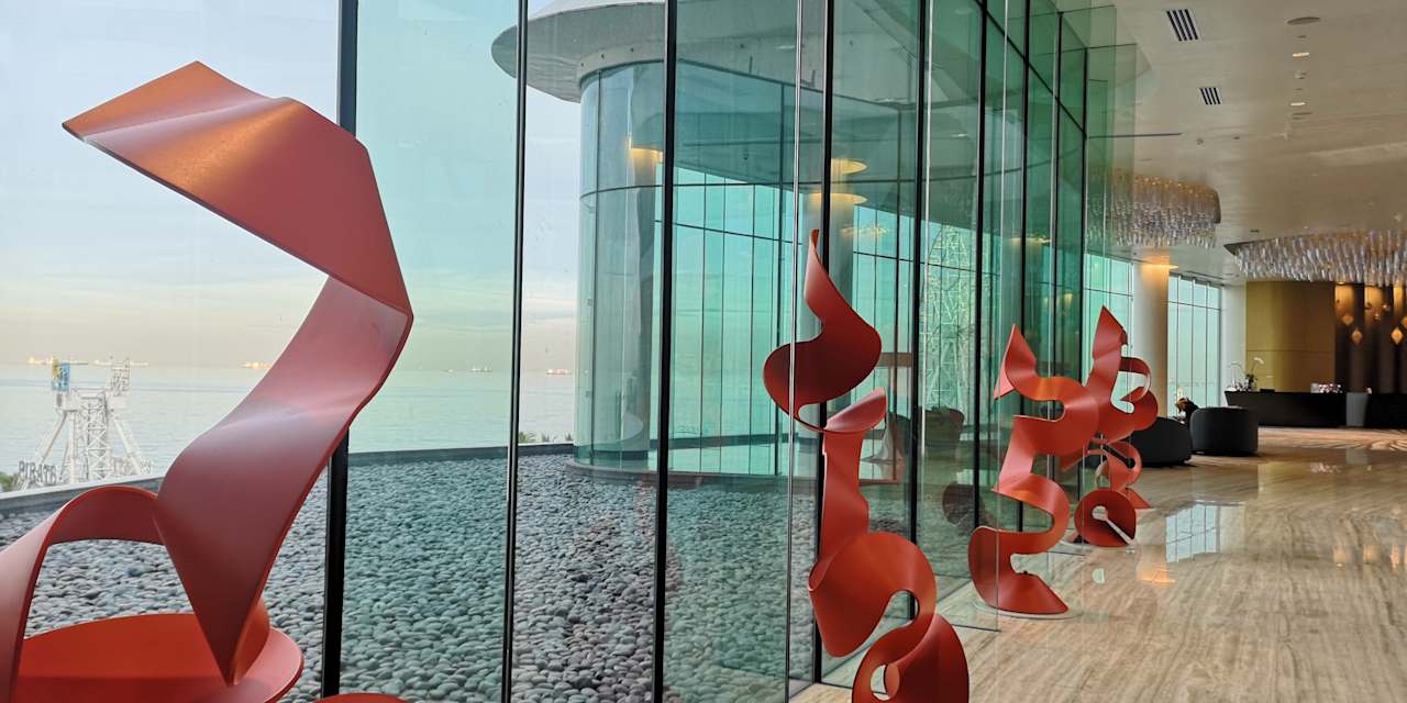 Schöner Ausblick und fancy Kunst zwischen Lobby und Frühstückssaal.