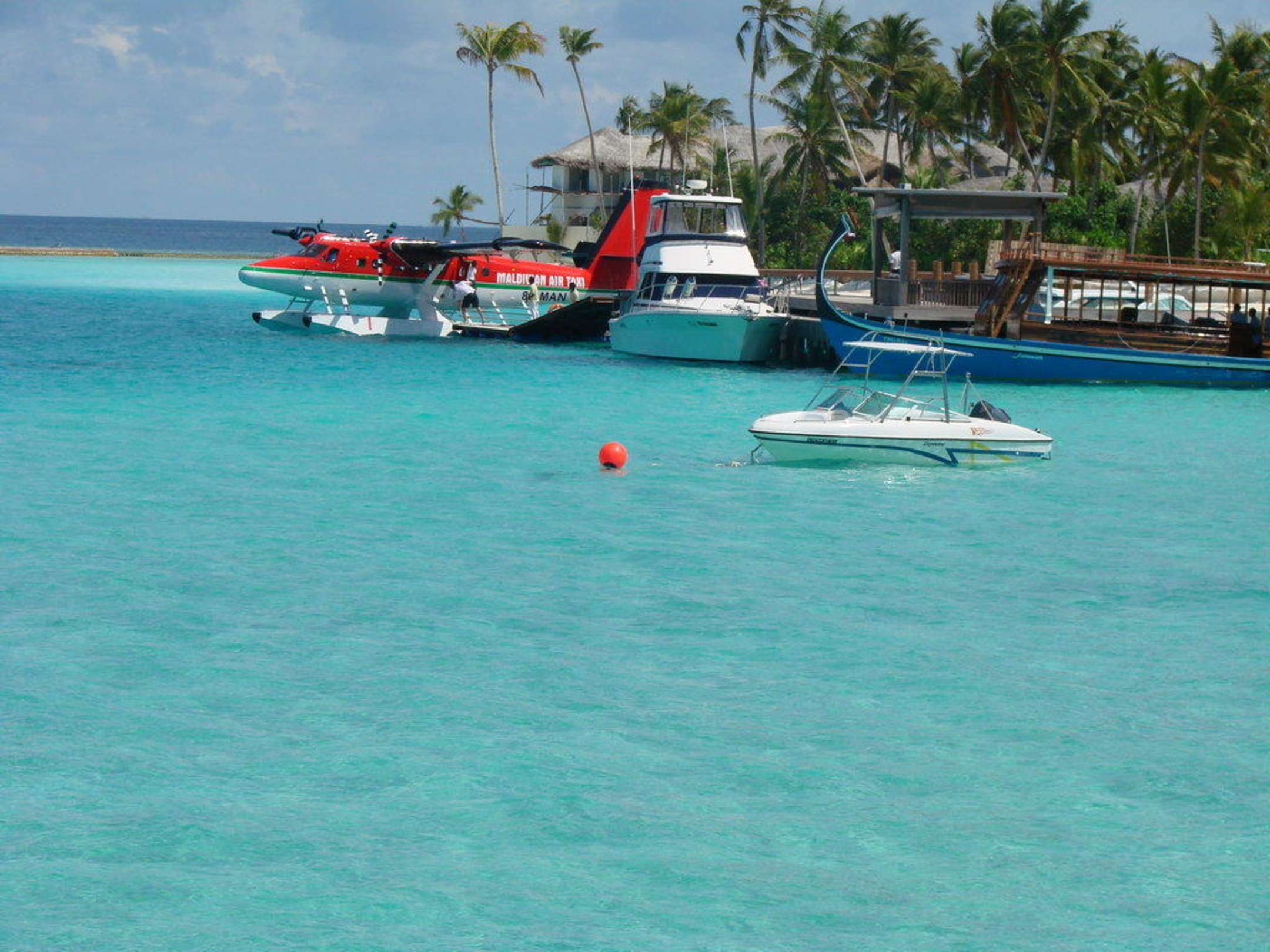Ein Wasserflugzeug legt an