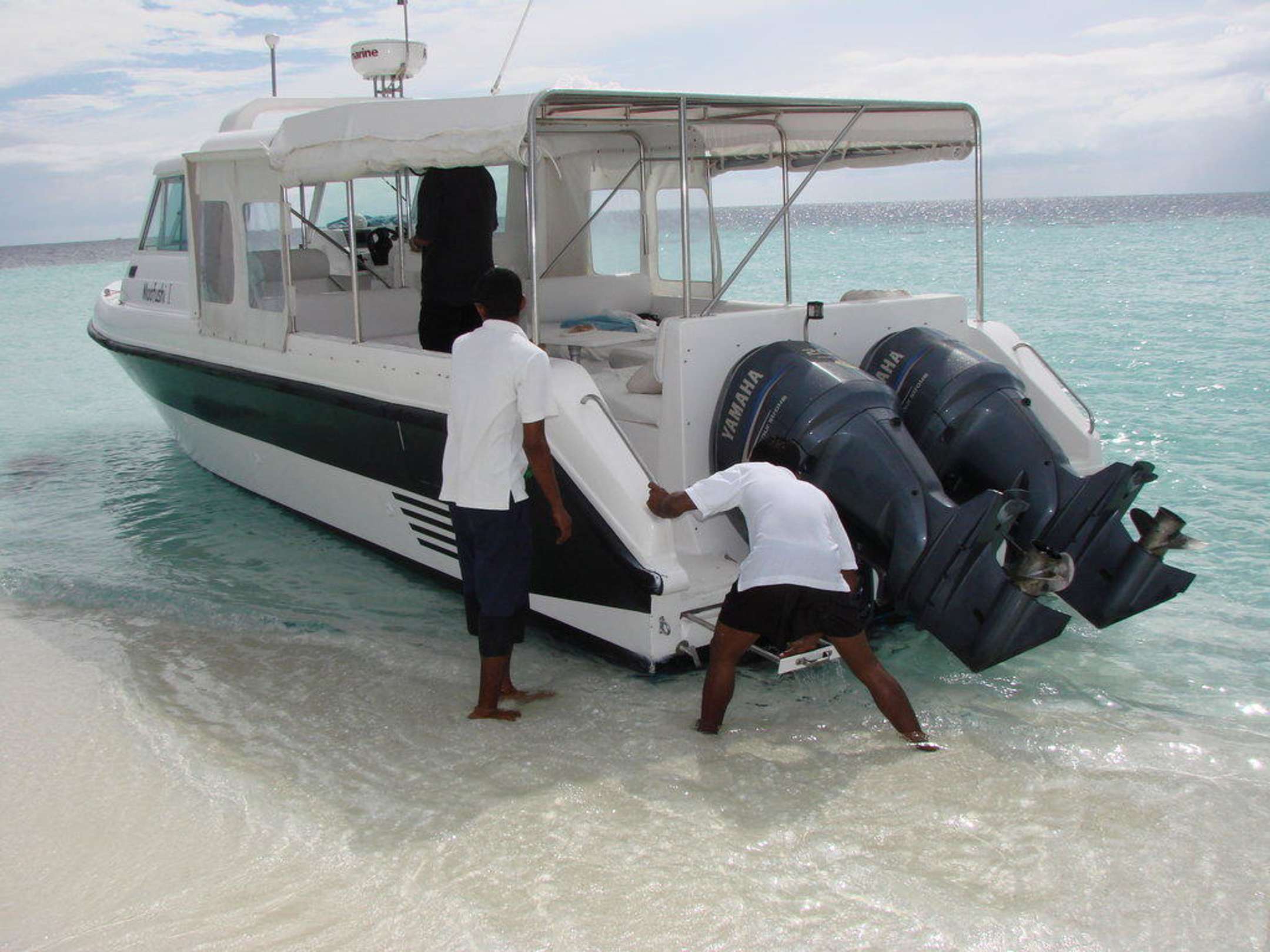 Angekommen auf der AusflugsinselDie gecharterter Yacht wird bis zum Strand auf der unbewohnten Insel gezogen.