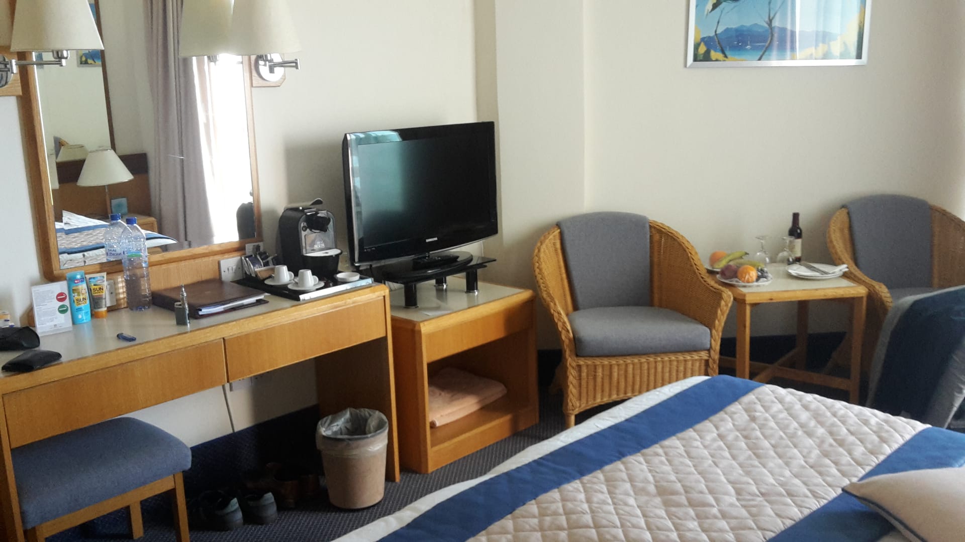 Modernes Zimmer mit Kaffeemaschine und Wasserkoche