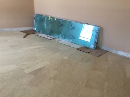 ZimmerEs werden neue Balkongeländer angebracht die alten herausgeschlagen und neue aus Holz angebracht dann innen diese Windschutzscheibe