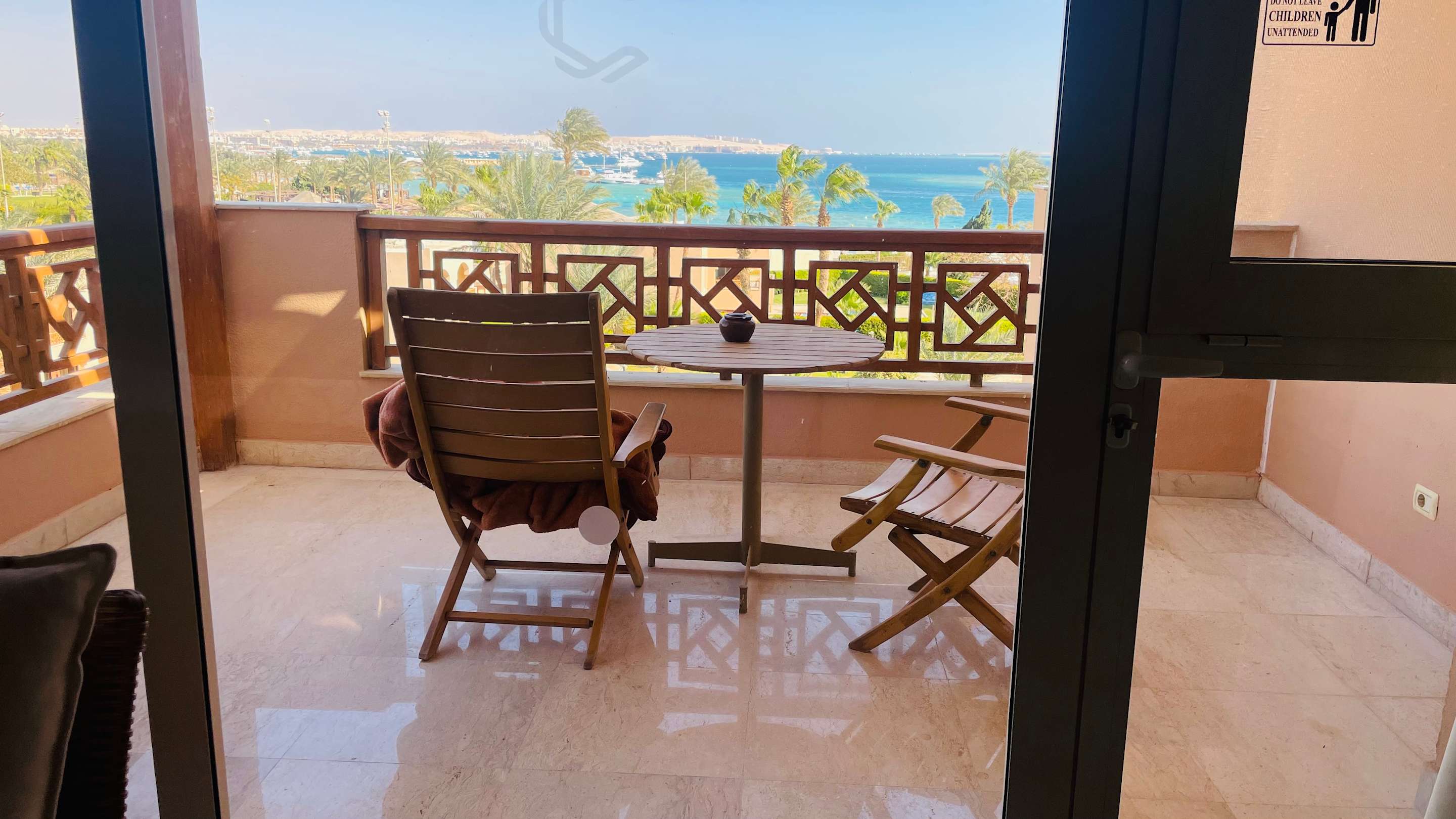 Großer Balkon mit Blick aufs Meer.
