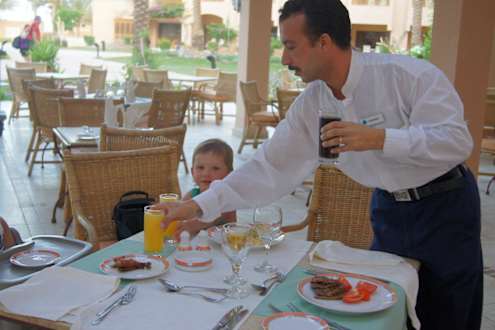 Дети обедаютодин из любимых детьми официантов Ассама. А дети очень чувствуют доброту искреннюю