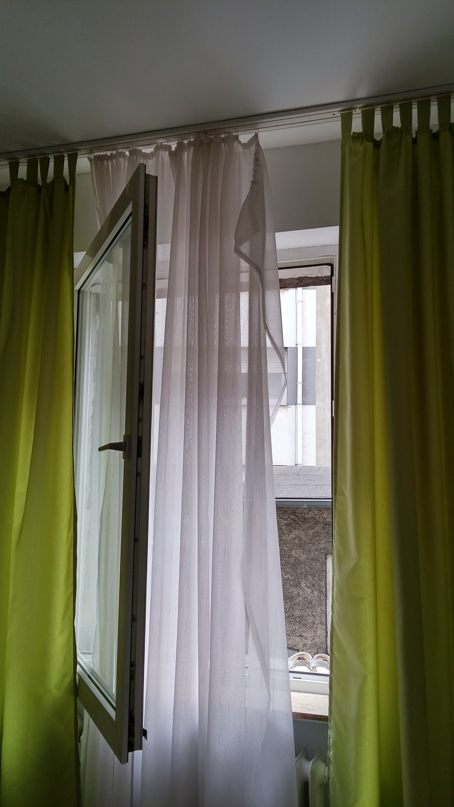 Gardine uralt, hing halb runter