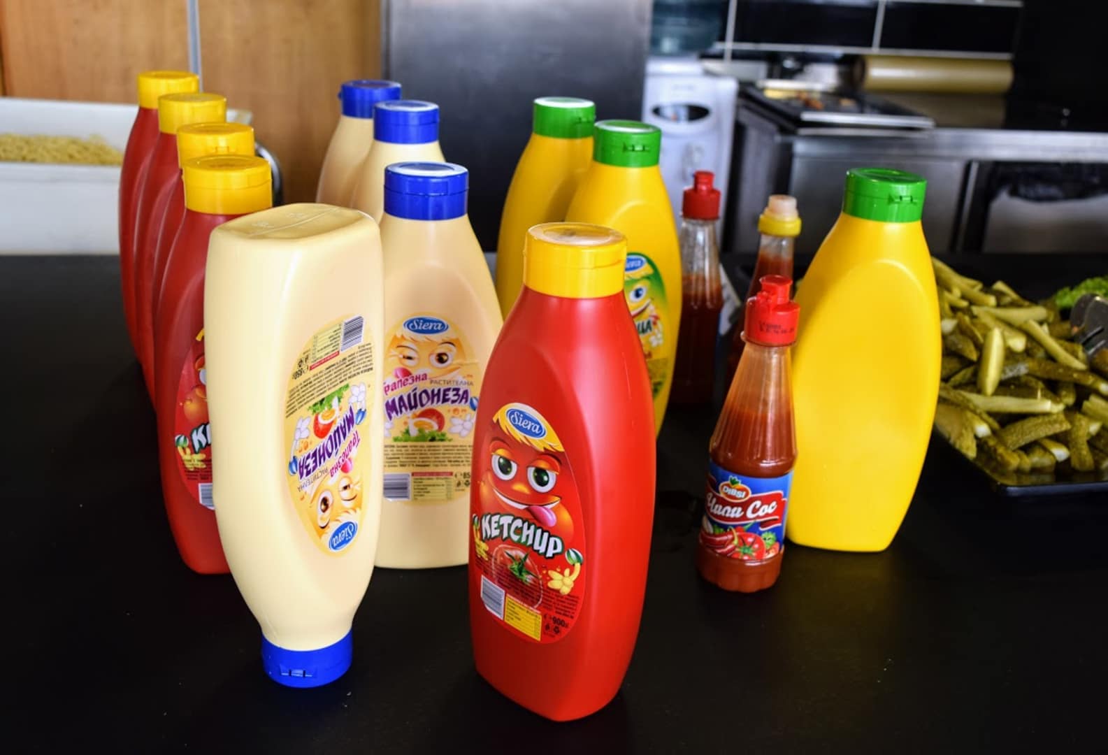 Ketchup, Majo und Soßen am Buffet