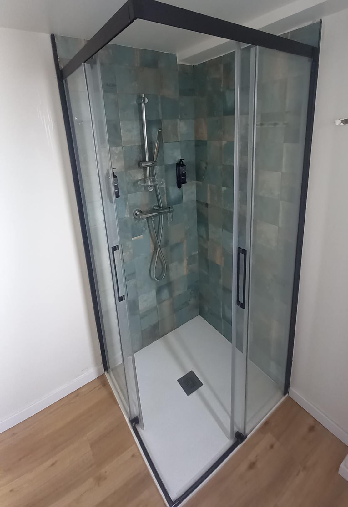 ZimmerDusche sieht man schon erste Schimmelspuren und bei längeren Duschen läuft einiges Wasser raus bei den Dichturngen.