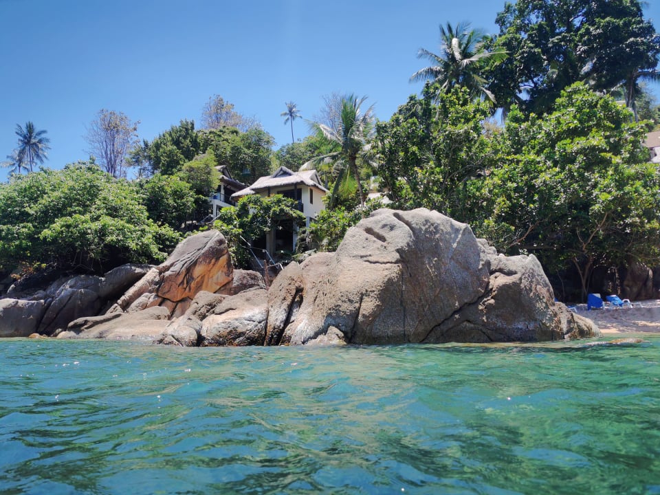 Blick vom Wasser auf den Strand