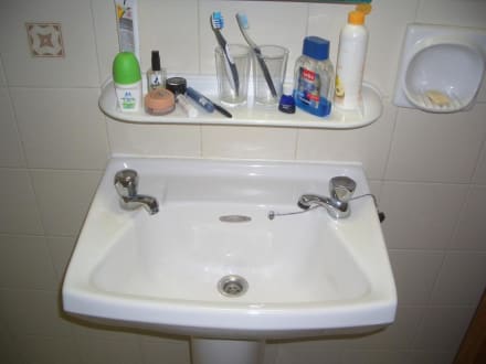 voriges Jahrhundert! 1 Kalt u. 1 Warmwasserhahn, man macht mit den Händen eine Mulde und läßt einmal kaltes und warmes Wasser reinlaufen, dann kann man sich das Gesicht waschen! Irgendwie lustig!