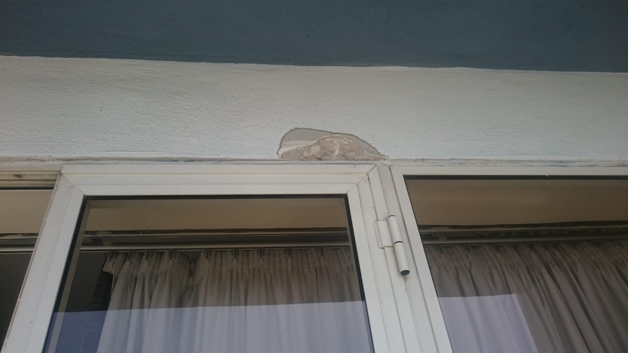 Ausbrüche am Fenster auf dem Balkon