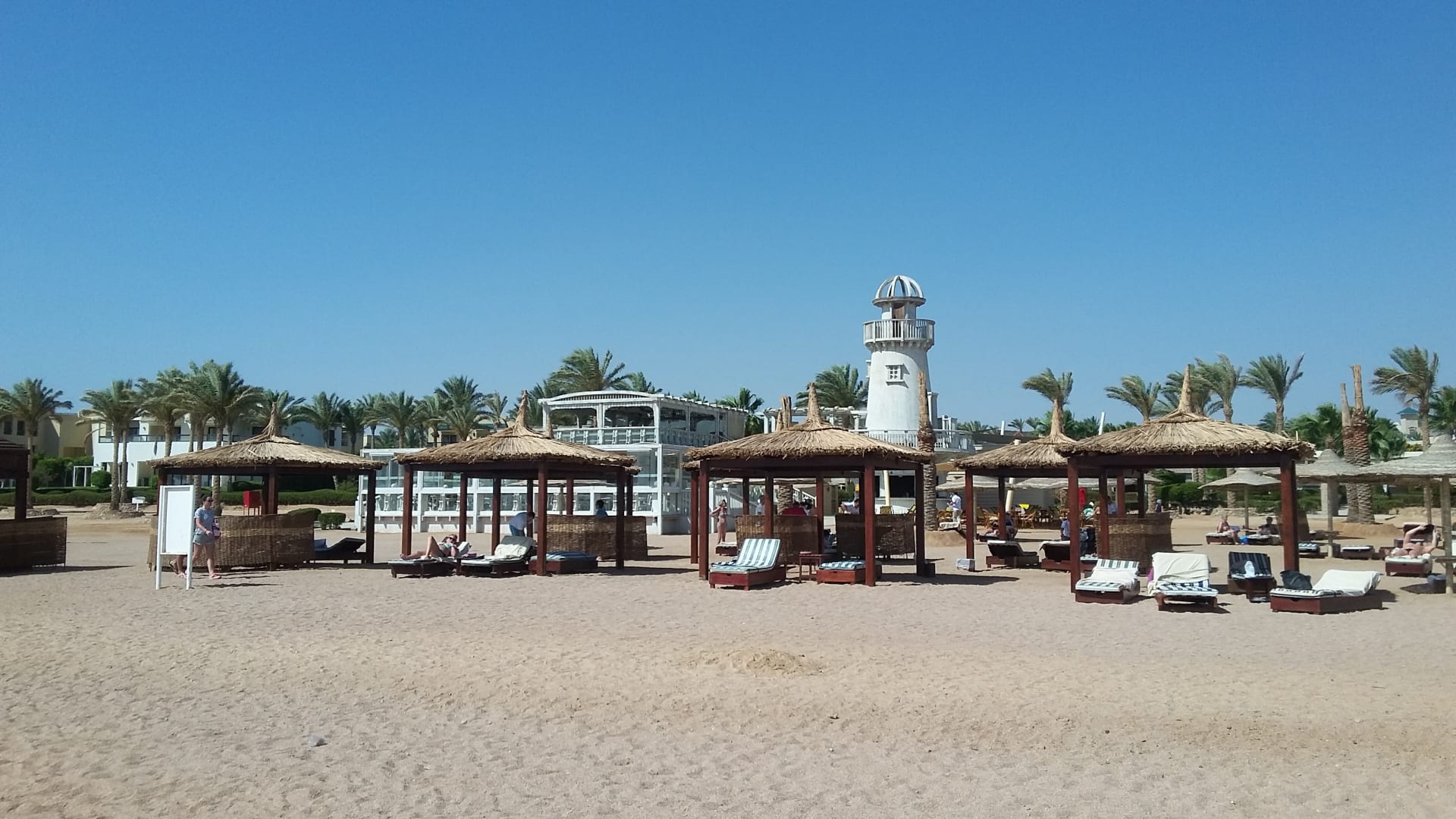 Blick vom Wasser Richtung Strandbar (Leuchtturm) und Restaur
