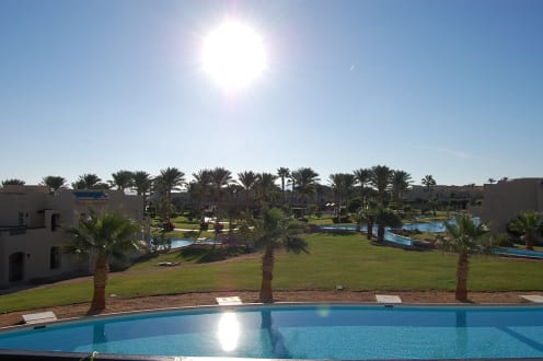 Bilck vom unseren Bungalow und immer war sie präsent die Sonne hat und 14 Tage die Treue gehalten ...