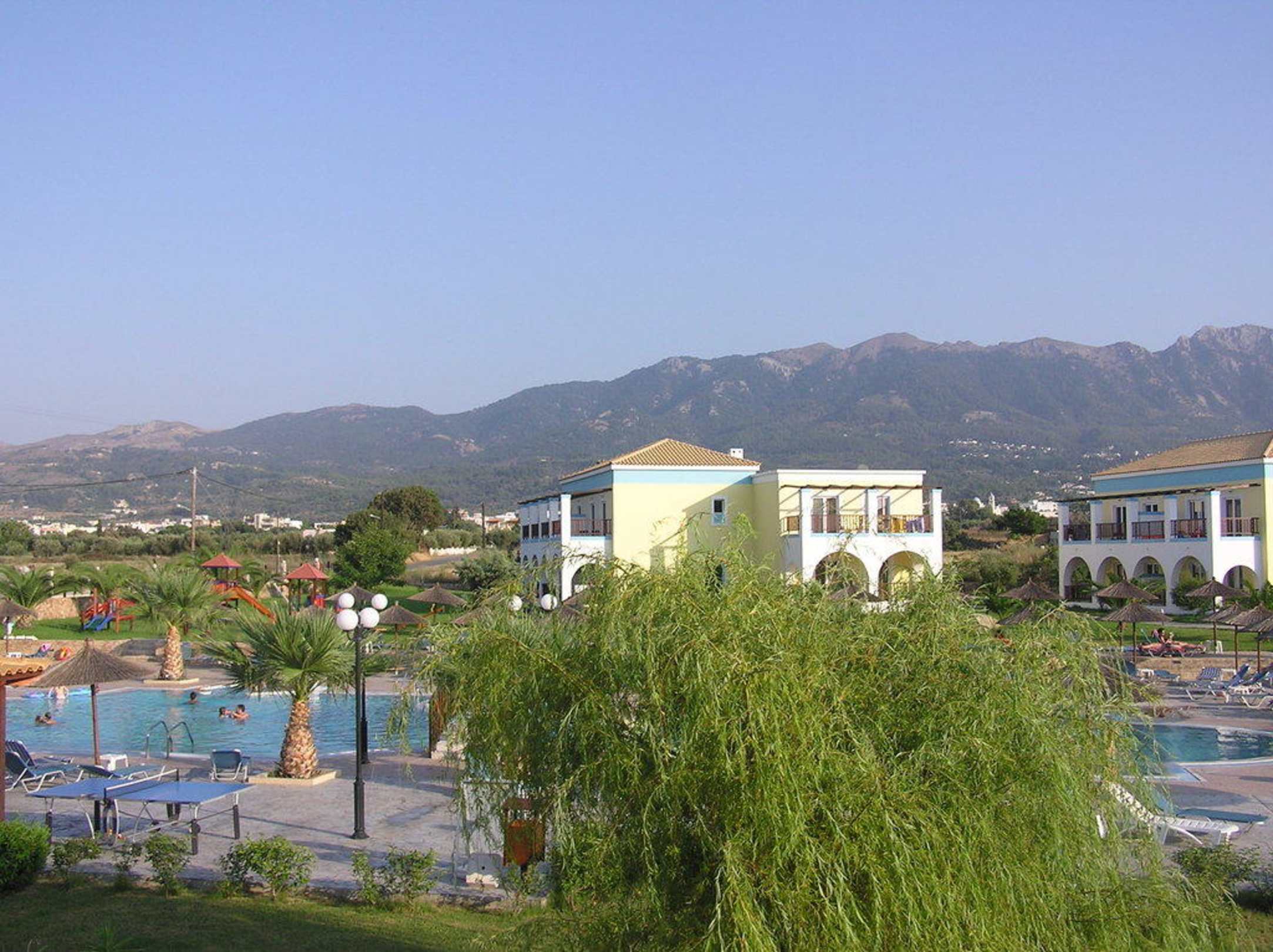 Blick auf den zweiten Pool im VillageAppartement 805 hatte diesen tollen Blick auf den Pool und auf Zia im Hintergrund