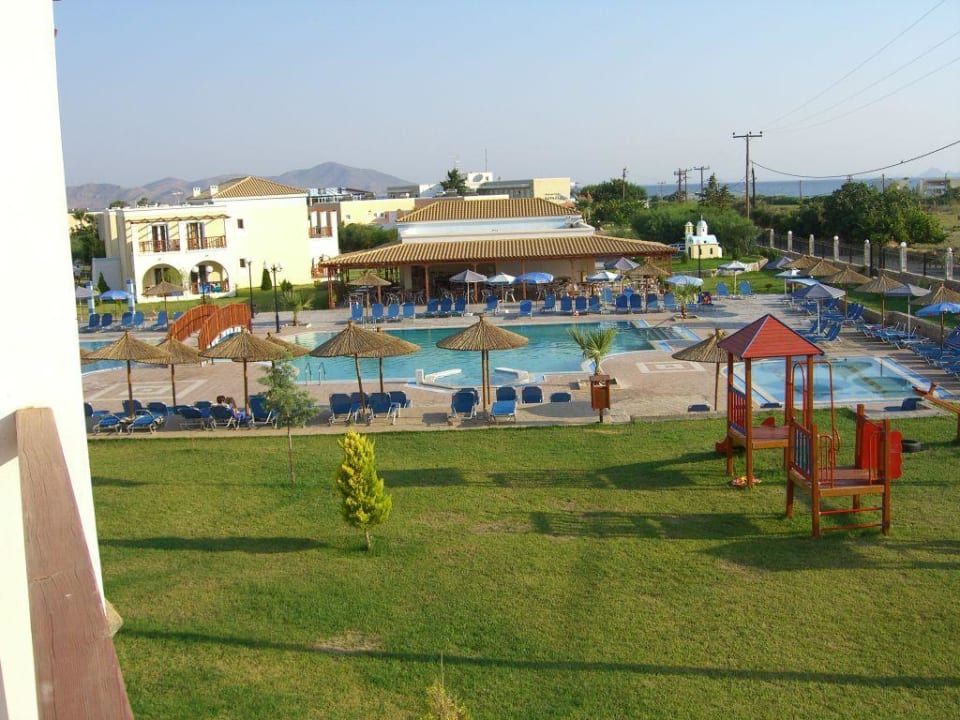 Blick vom Balkon auf den Poolbereich
