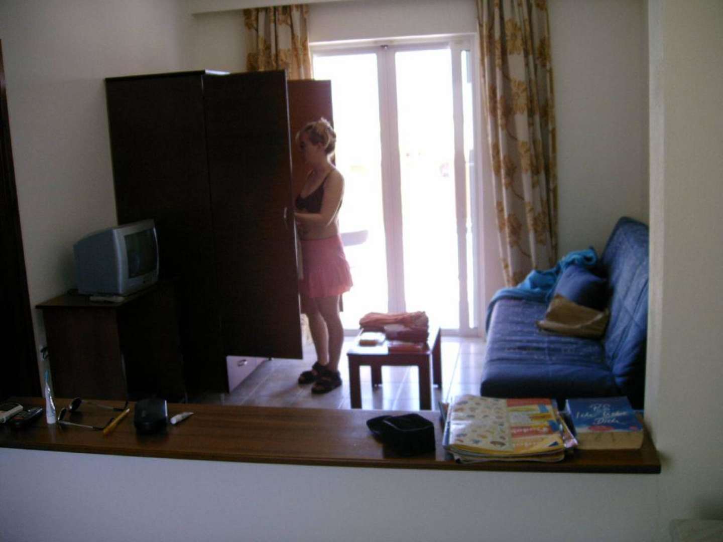 Die andere Seite.......des Wohnschlafraums,mit der zweiten Schlafcouch und dem zweiten Schrank.Dahinter ein Ausgang zum Balkon