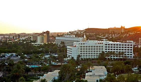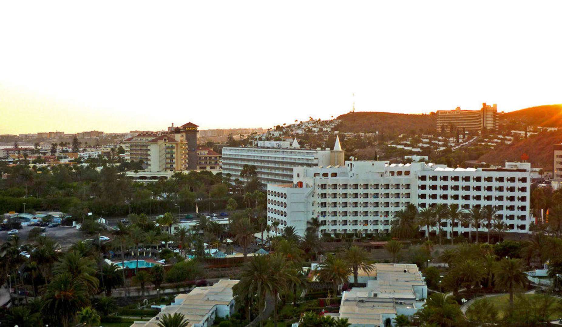 Hotel IFA BeachDas Bild zeigt die Hotelanlage + Pool vom gegenüberliegenden Berg fotografiert