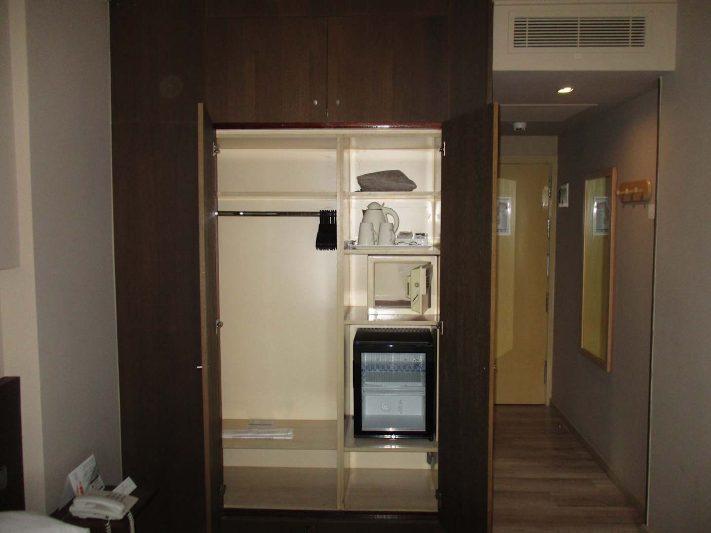 Zimmer 215 (geöffneter Schrank und Flur)