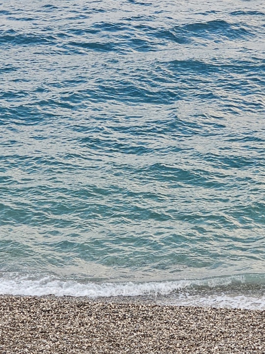 StrandKiesstrand. Wasserschuhe empfehle ich sehr! Ansonsten gibt es einen Holzsteg mit Liegen und Sonnenschirmen. Da kann man über Treppen ins Wasser.